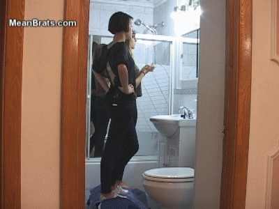 Diese High School Girls haben sich heute einen Jungen mit auf ihr Mädchenzimmer genommen! Um ihn so richtig zu erniedrigen, filmen sie das Ganze, damit sie ihn noch lange auslachen können! Heute muss er sich im Badezimmer auf den Boden legen! Da das Bad sehr klein ist, passt er gerade rein und wenn die Mädels jetzt rein wollen müssen sie sich auf ihn stellen! Sie trampeln auf ihm herum und benutzen ihn als menschlichen Badteppich!